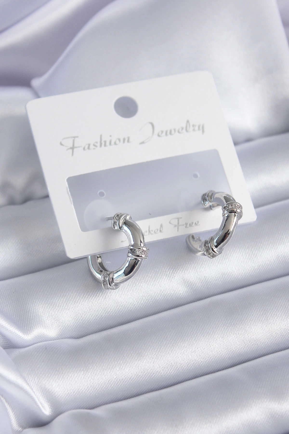 Gümüş Renk Zirkon Taşlı Halka Model Pirinç Kadın Küpe