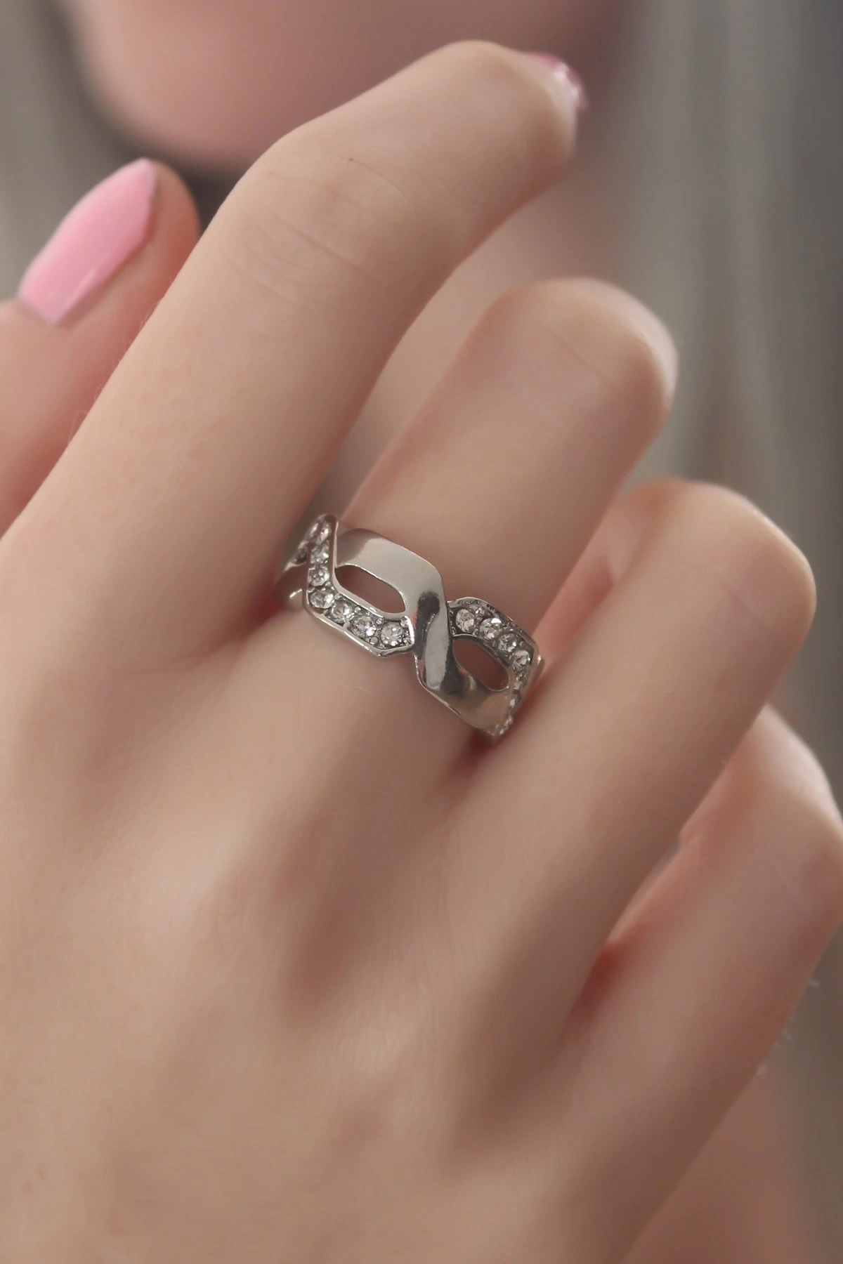 Gümüş Renk Zirkon Taşlı Kadın Yüzük