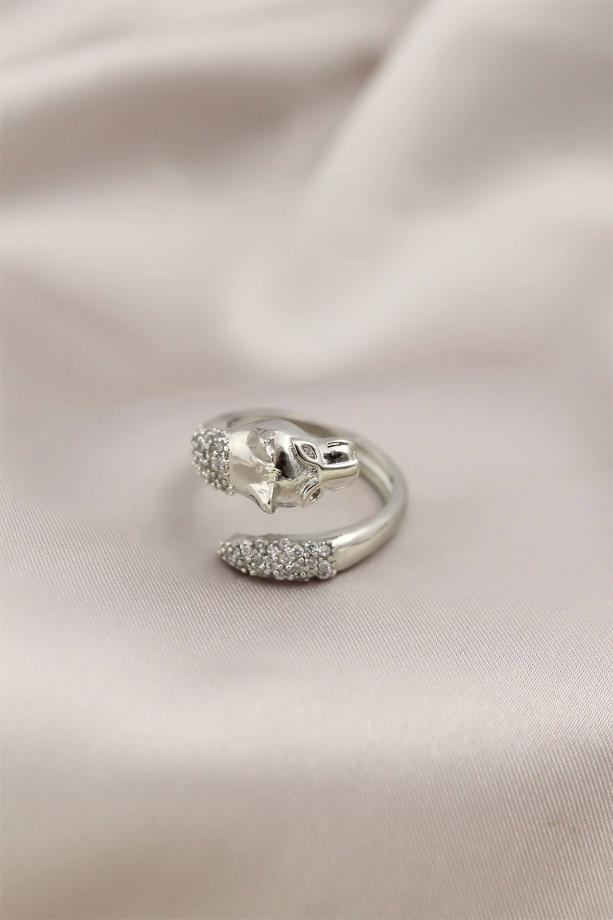 Gümüş Renkli Metal Kaplan Model Zirkon Taşlı Kadın Yüzük