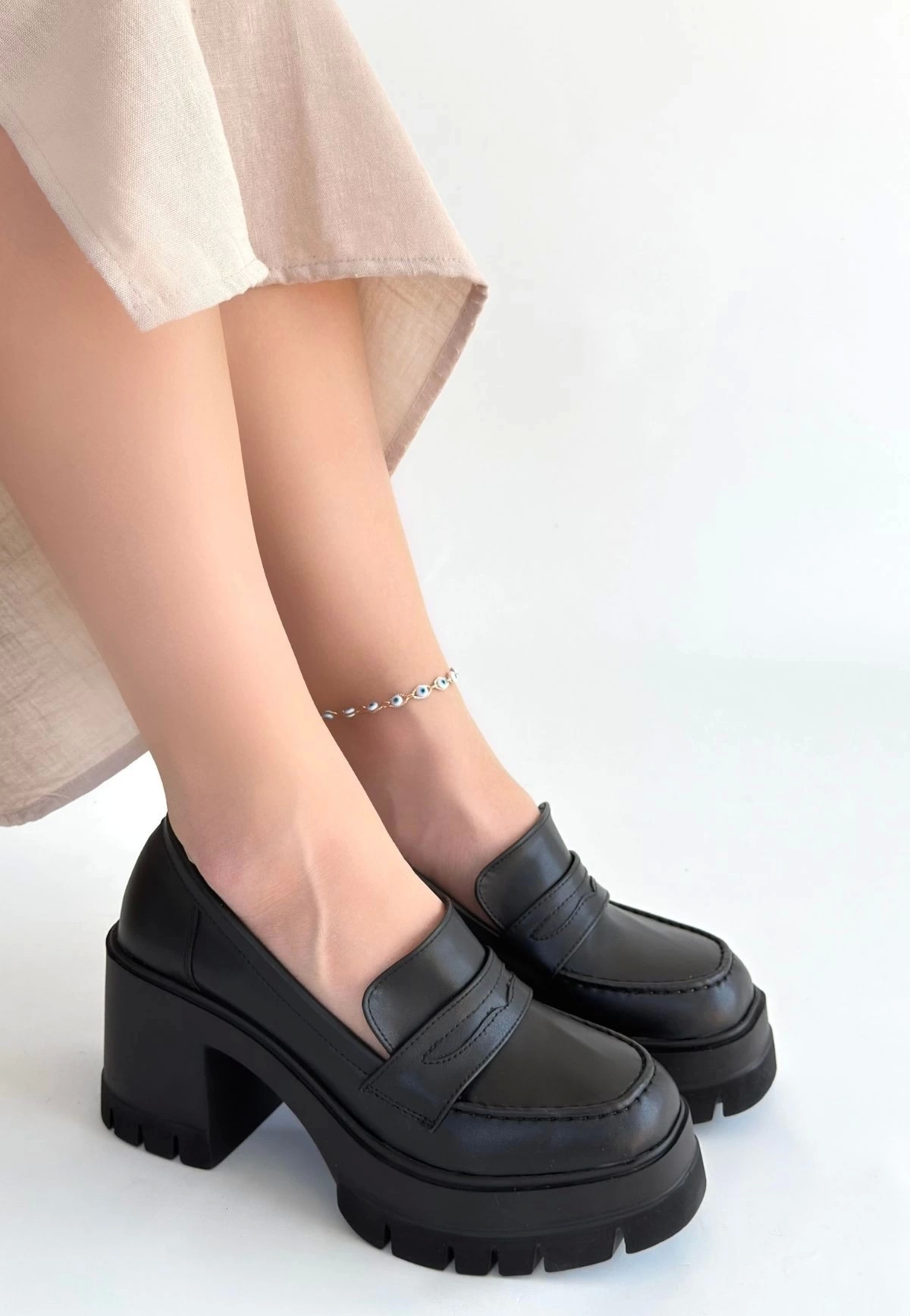 Janes Siyah Cilt Dolgu Topuk Ayakkabı