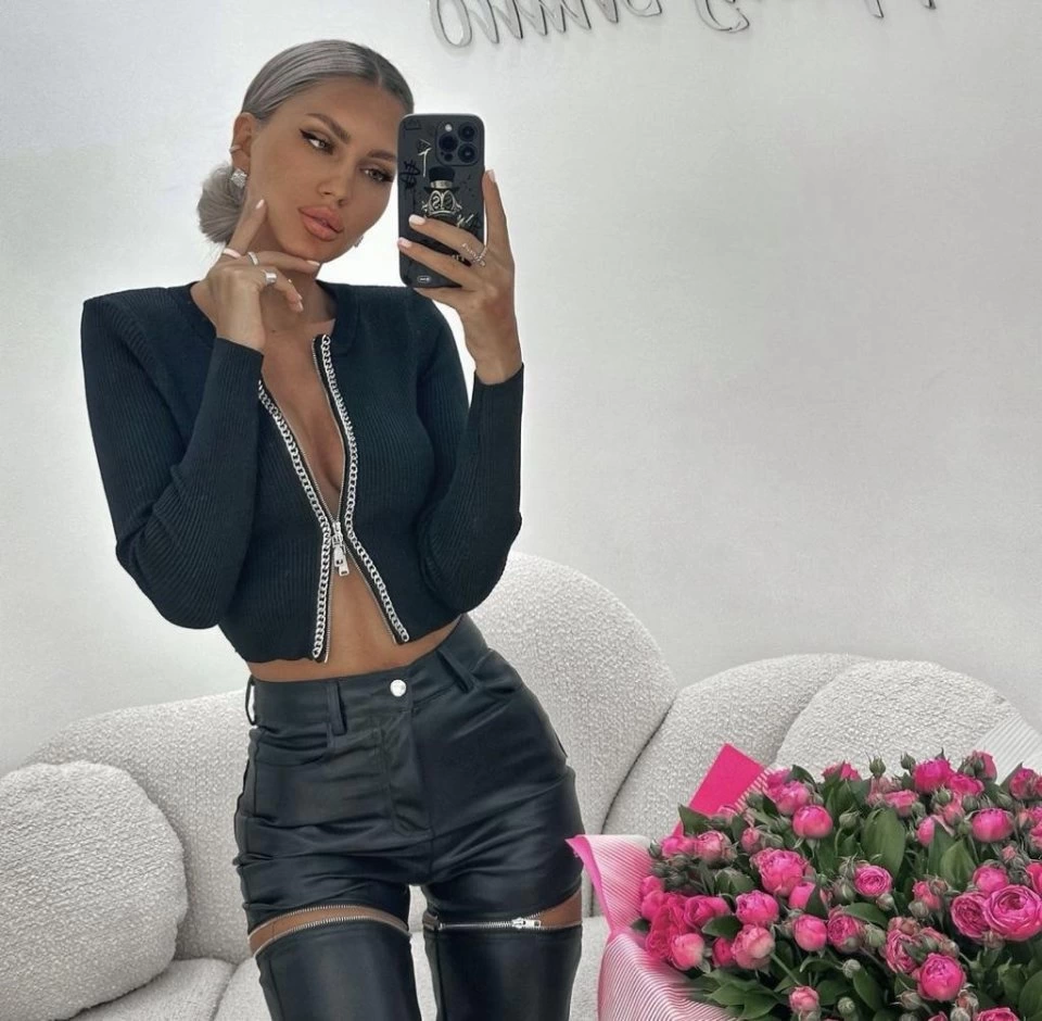 Kadın Kaşkorse Kumaş Zincirli Çift Fermuarlı Fırsat Ürün Bluz