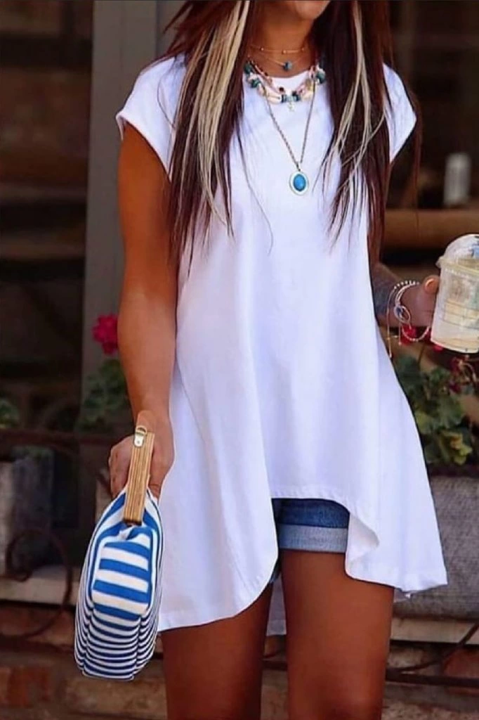 Kadın Kısa Kollu Asimetrik Viskon Kumaş Bluz