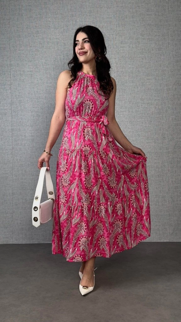 Kadın Omuzlardan Açık Boyundan Geçmeli Desenli Süprem Bluz