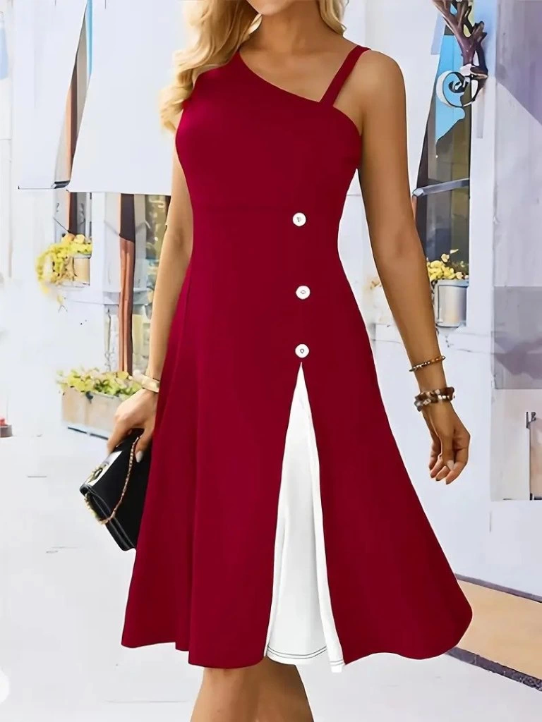 Kadın Tek Omuzu şerit Detaylı Kolsuz Yandan Düğme Detaylı Janjan Krep Elbise