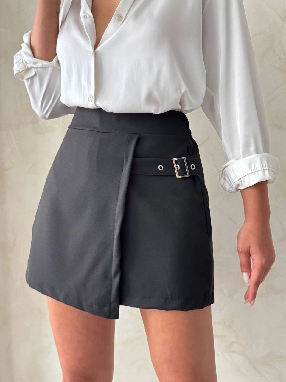 Kadın Tokalı Şort Etek Siyah S25449