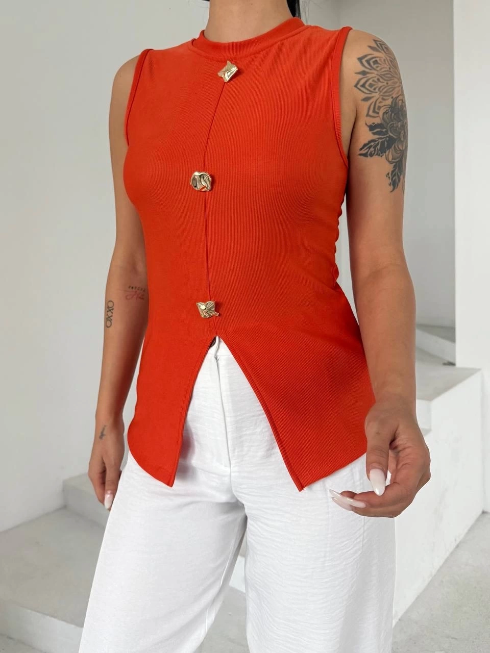 Kadın Turuncu Bisiklet Yaka Gold Düğmeli Ottoman Bluz S2310
