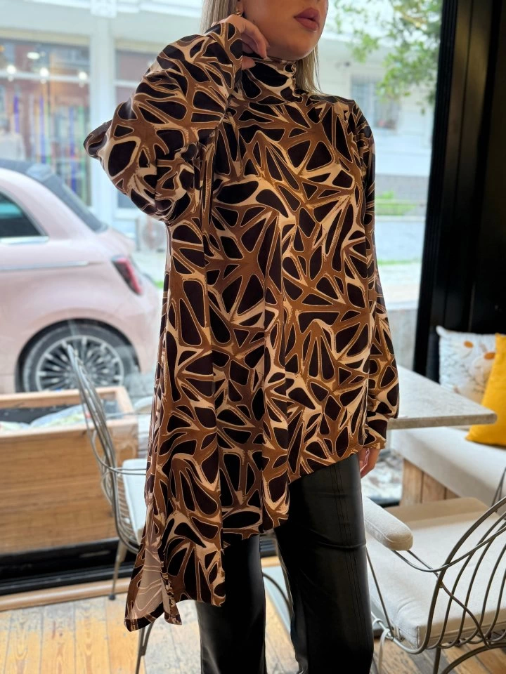 Kadın Uzun Kollu Balıkçı Yaka Asimetrik Kesim Salaş Bluz