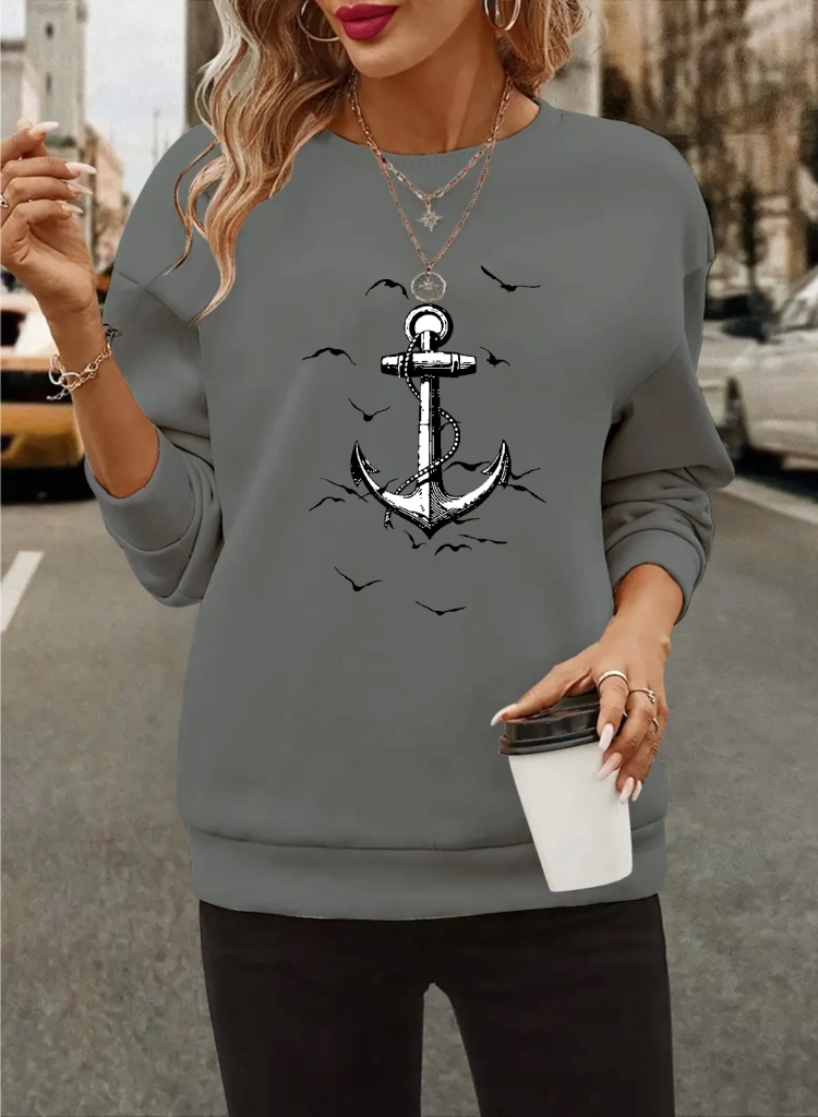 Kadın Uzun Kollu Bisiklet Yaka Desenli Viskon Iki Iplik Bluz