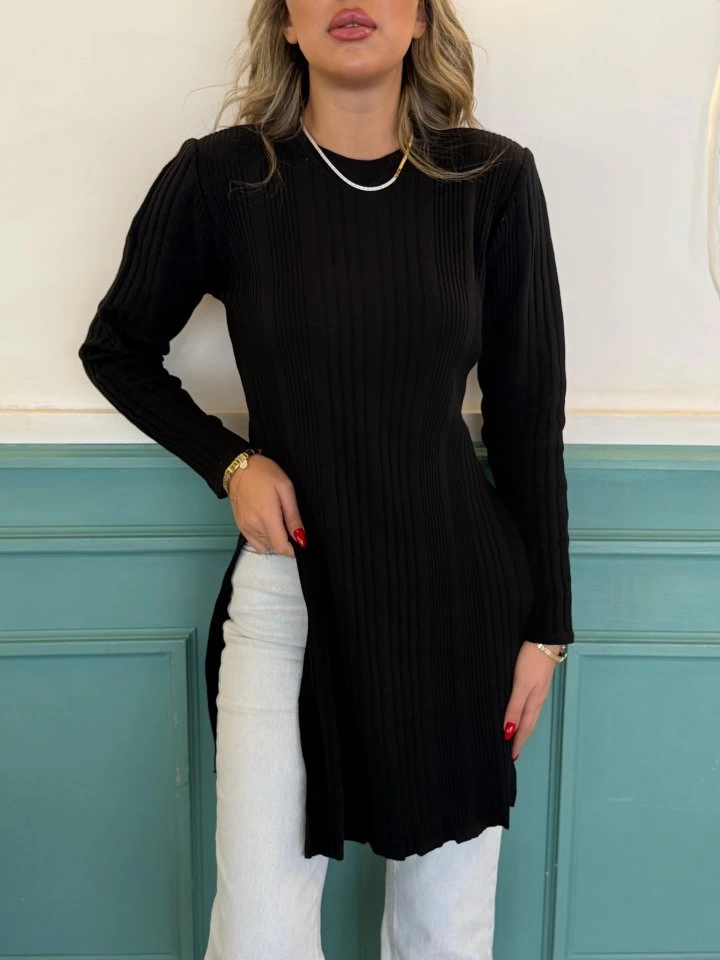 Kadın Uzun Kollu Bisiklet Yaka Iki Yandan Yırtmaç Detay Triko Bluz