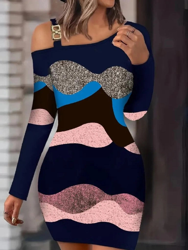 Kadın Uzun Kollu Tek Omuzu Askı Toka Detaylı Kısa Dalgıç Elbise