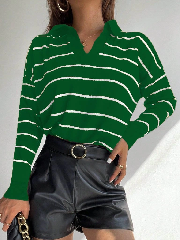 Kadın Uzun Kollu V Yaka Çizgili Triko Bluz