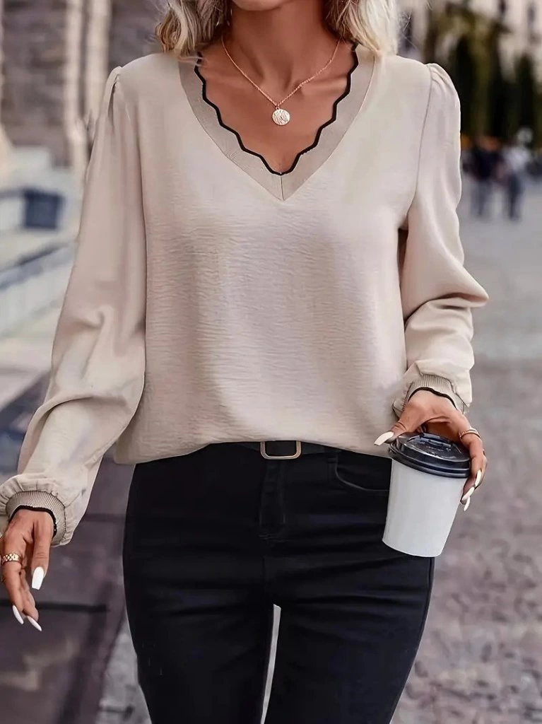 Kadın Uzun Kollu V Yakalı Aerobin Bluz