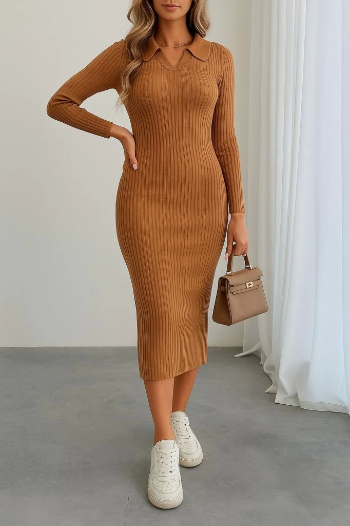 Kadın Uzun Kollu Yakalı Triko Elbise