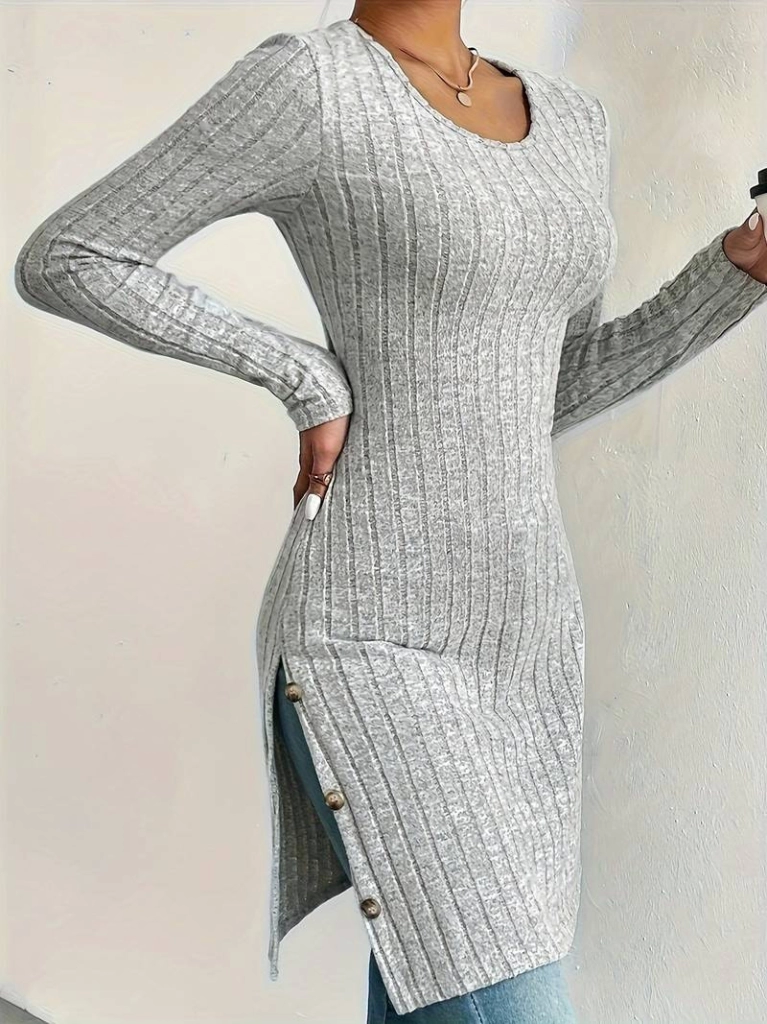 Kadın Uzun Kollu Yuvarlak Yaka Yandan Yırtmaçlı Düğmeli şardonlu Kaşkorse Bluz