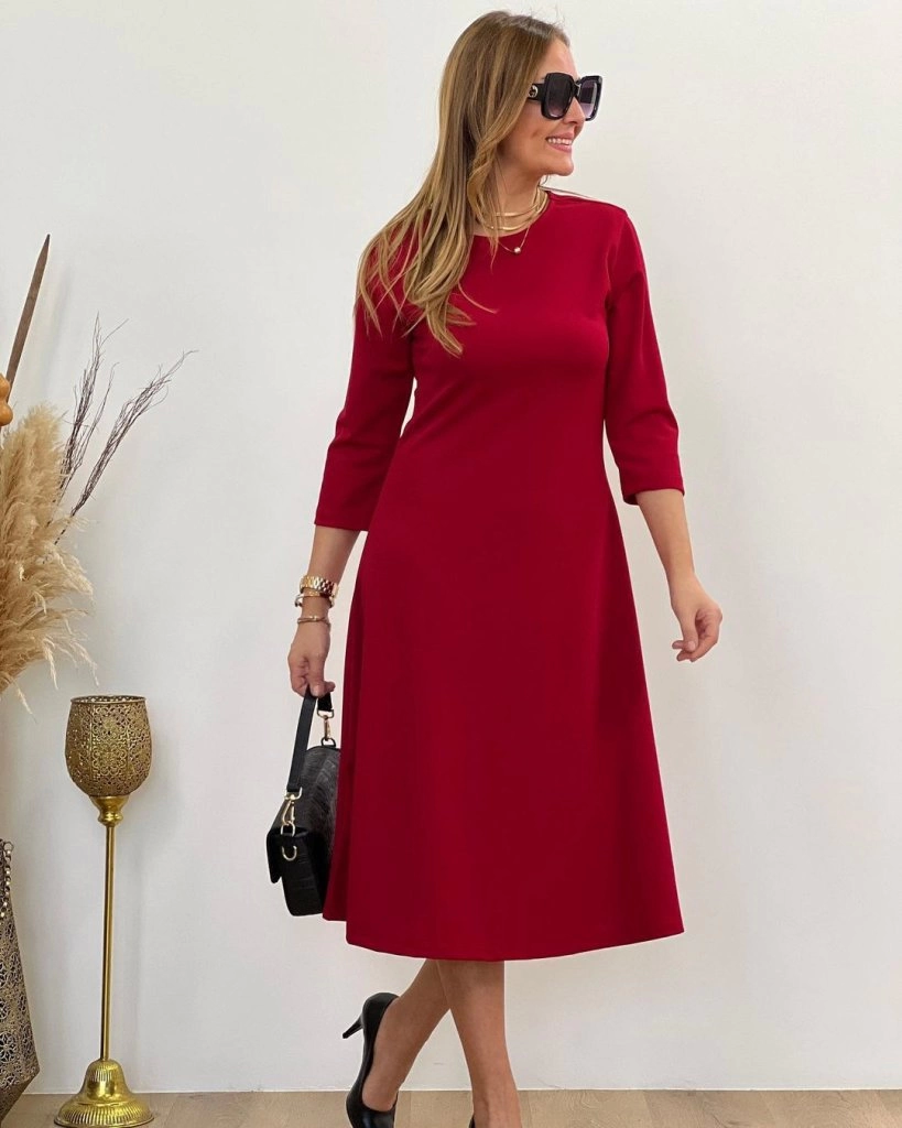 Kadın Uzun Truvakar Kol Bisiklet Yaka Midi Modal Elbise