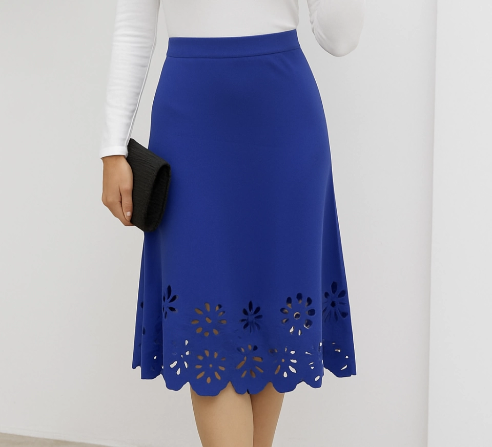 Kadın Yüksek Bel Lazer Kesim Detaylı Midi Ithal Krep Etek