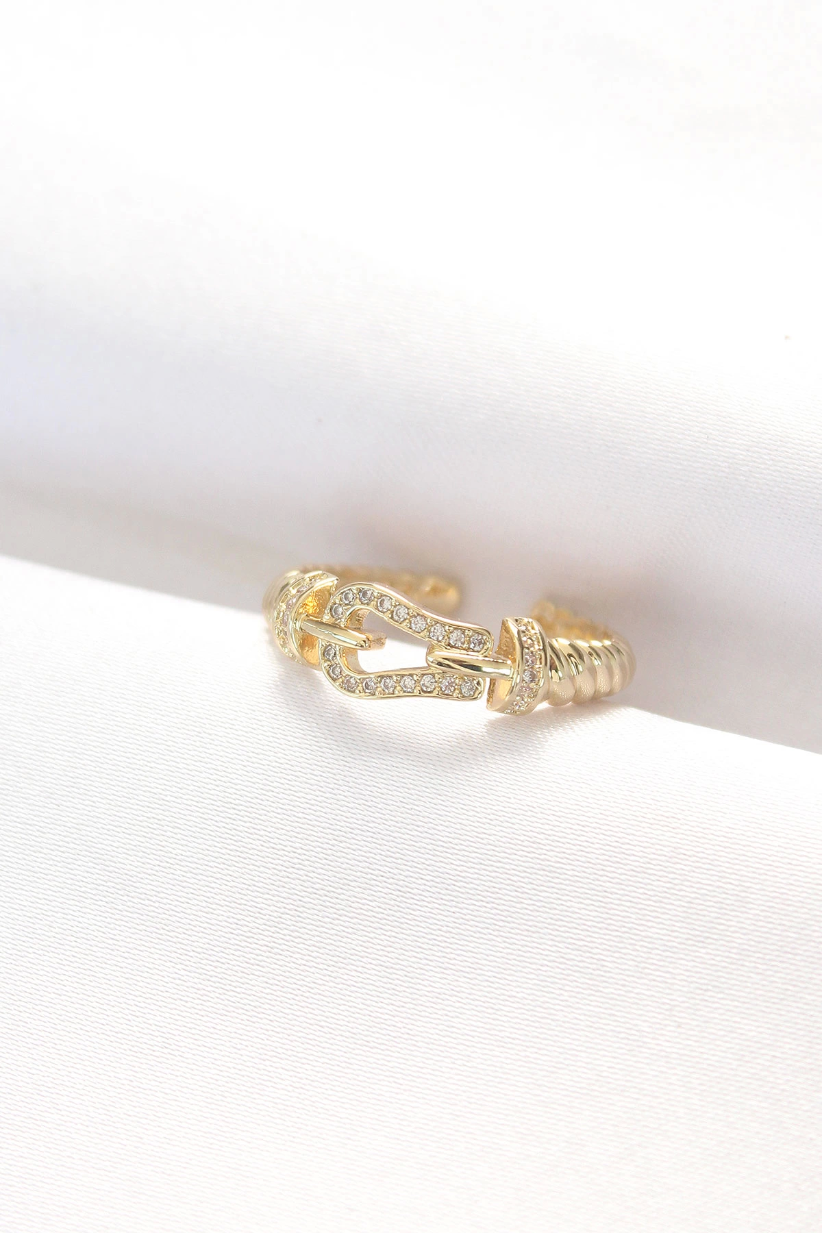 Kemer Tokası Tasarımlı Gold Renk Zirkon Taşlı Ayarlanabilir Yüzük