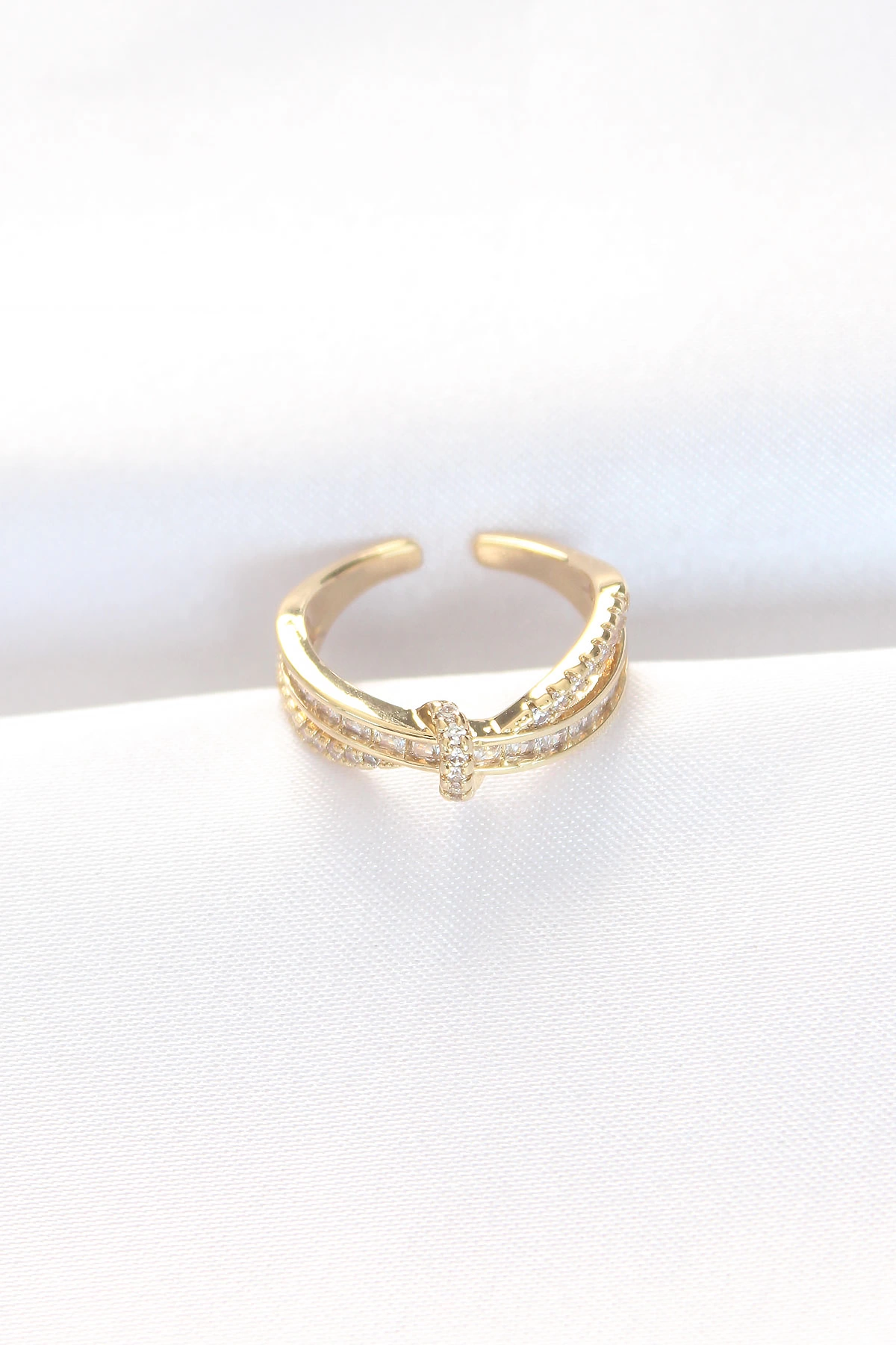 Kıvrım Model Gold Renk Zirkon Taşlı Ayarlanabilir Yüzük