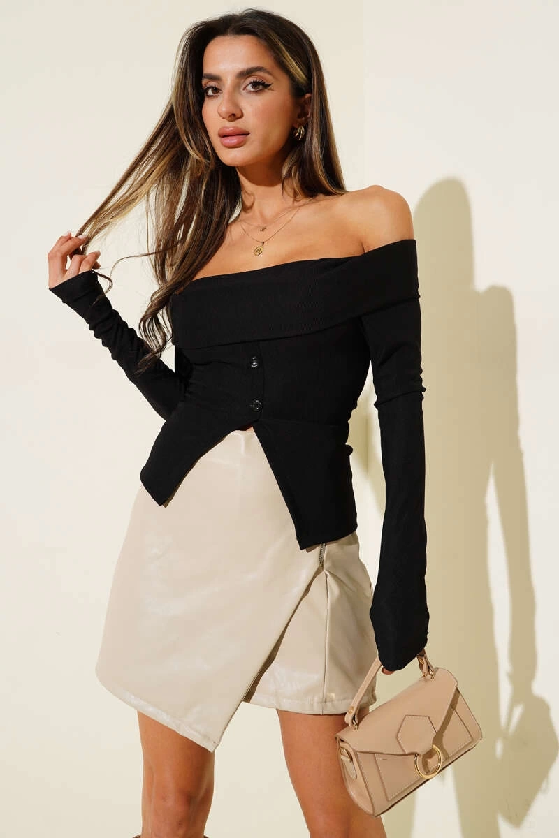 Madonna Yaka Düğmeli Bluz Siyah T4329