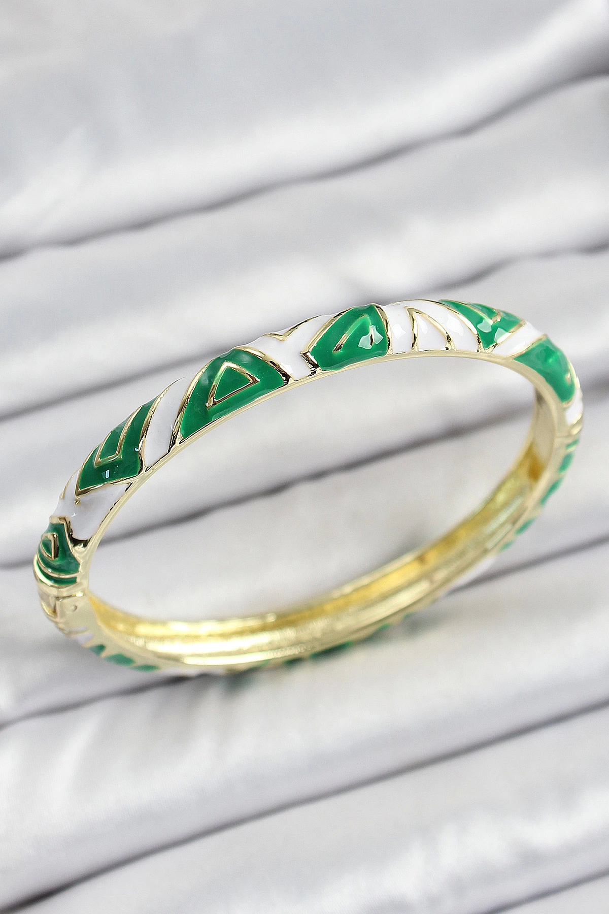 Mineli Pirinç Yeşil Beyaz Motifli Kadın Kelepçe