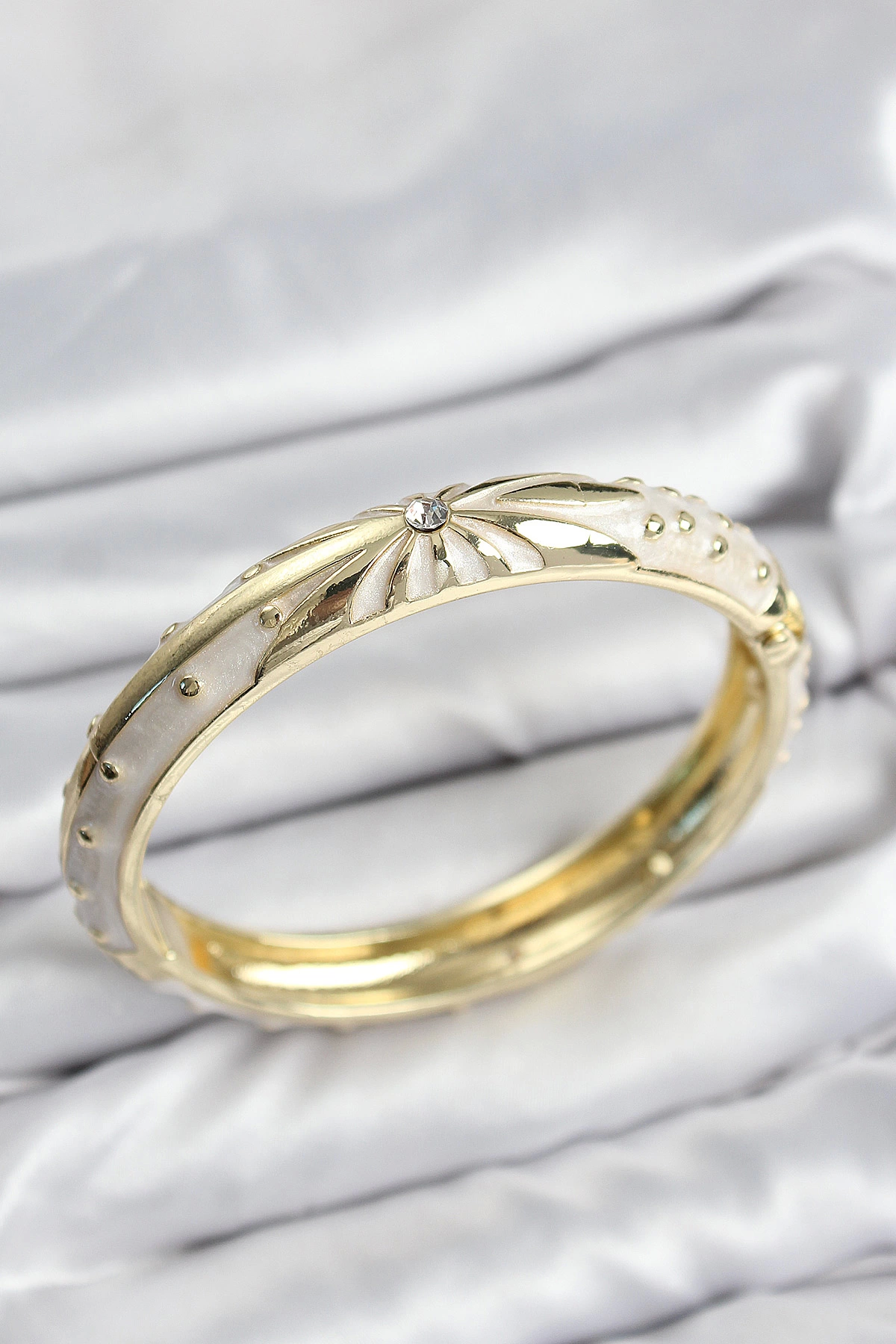 Mineli Pirinç Zirkon Taşlı Bej Desen Motifli Gold Kadın Kelepçe
