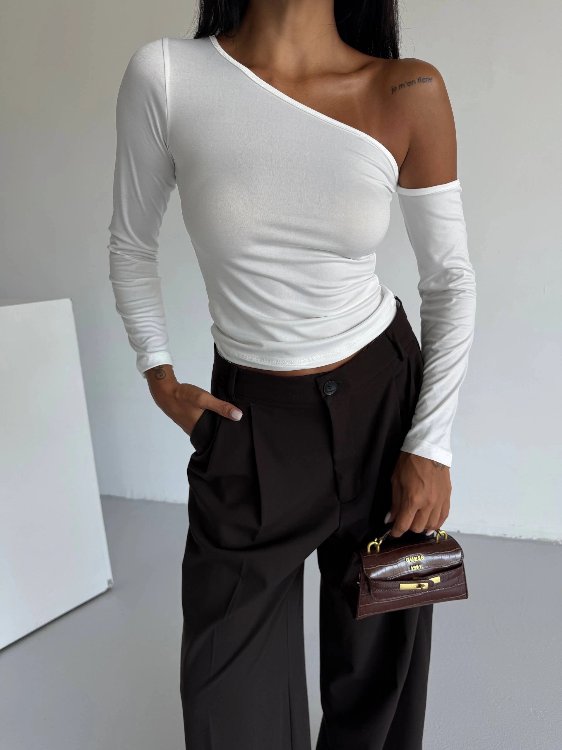 Omuz Detaylı Kollu Bluz Beyaz F2336