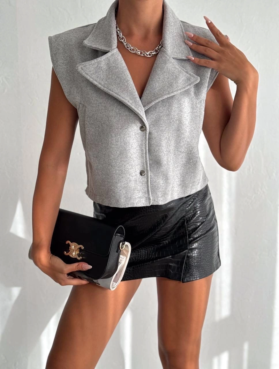 Önü Çıtçıtlı Cepli Kaşe Yelek Gri F2253