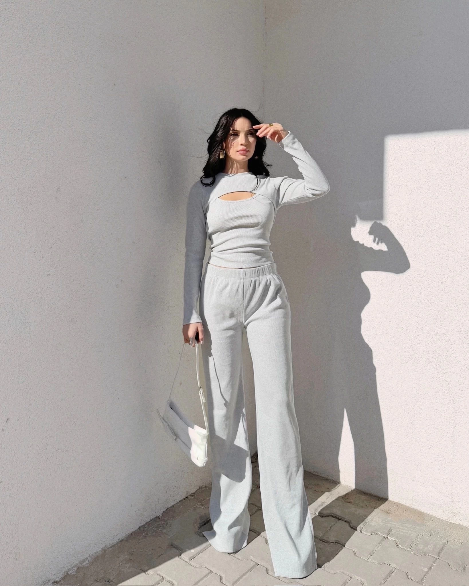 Pencereli Detaylı Alt Üst Takım Gri W3864