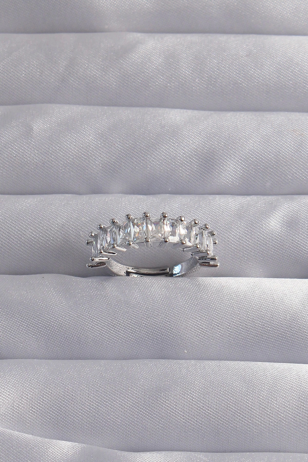 Pirinç Ayarlamalı Gümüş Renk Baget Taşlı Su Yolu Yüzük