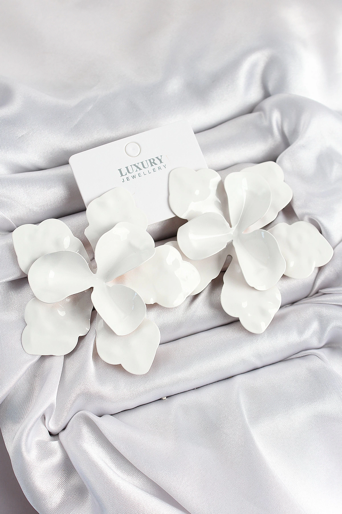 Pirinç Beyaz Çiçek Model Kadın Küpe