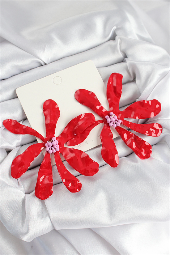 Pirinç Büyük Kırmızı Çiçek Model Kadın Küpe