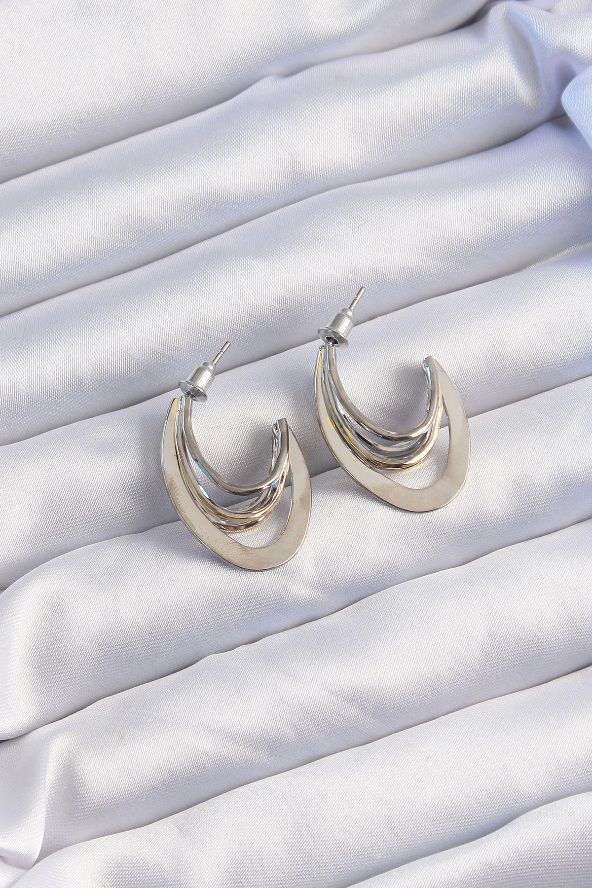 Pirinç Gold Gümüş Renkli Düz Plaka Halka Küpe