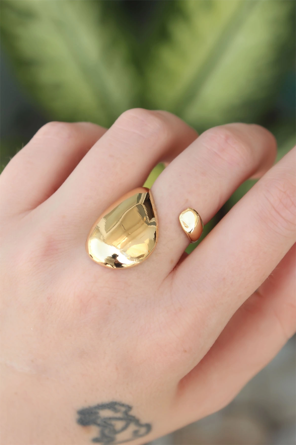 Pirinç Gold Renk Ayarlanabilir İri Bombeli Yüzük