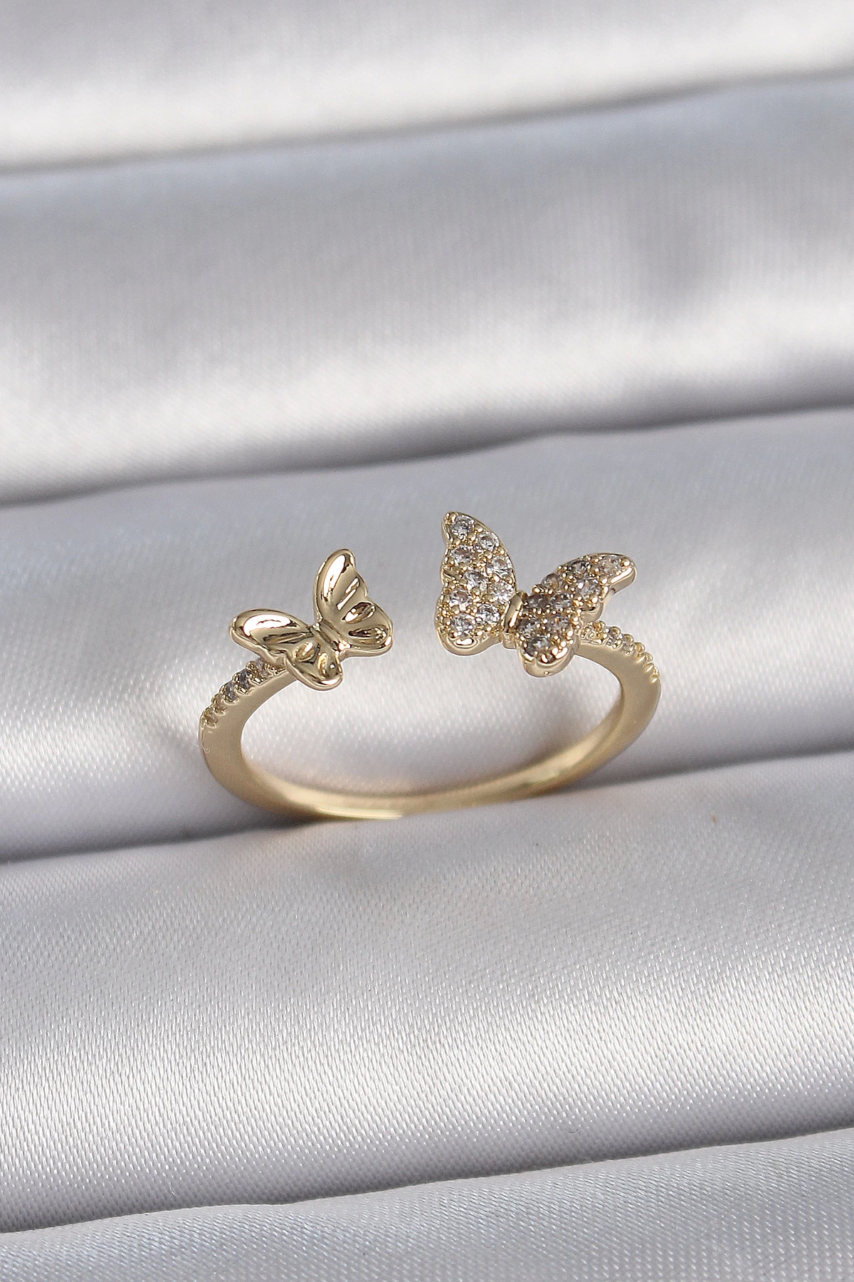 Pirinç Gold Renk Ayarlanabilir Zirkon Taşlı Kelebek Model Kadın Yüzük