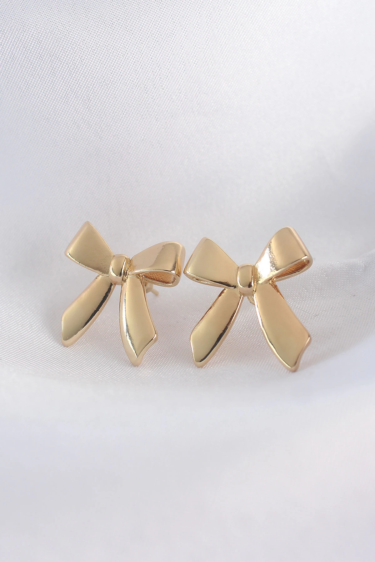 Pirinç Gold Renk Düz Plaka Fiyonk Küpe