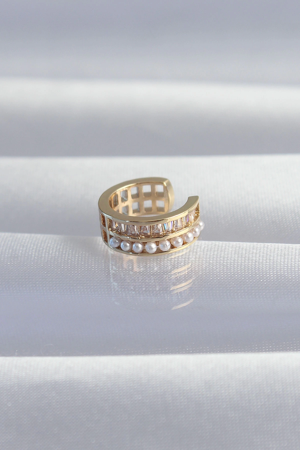 Pirinç Gold Renk İncili Baget Taşlı Earcuff Küpe