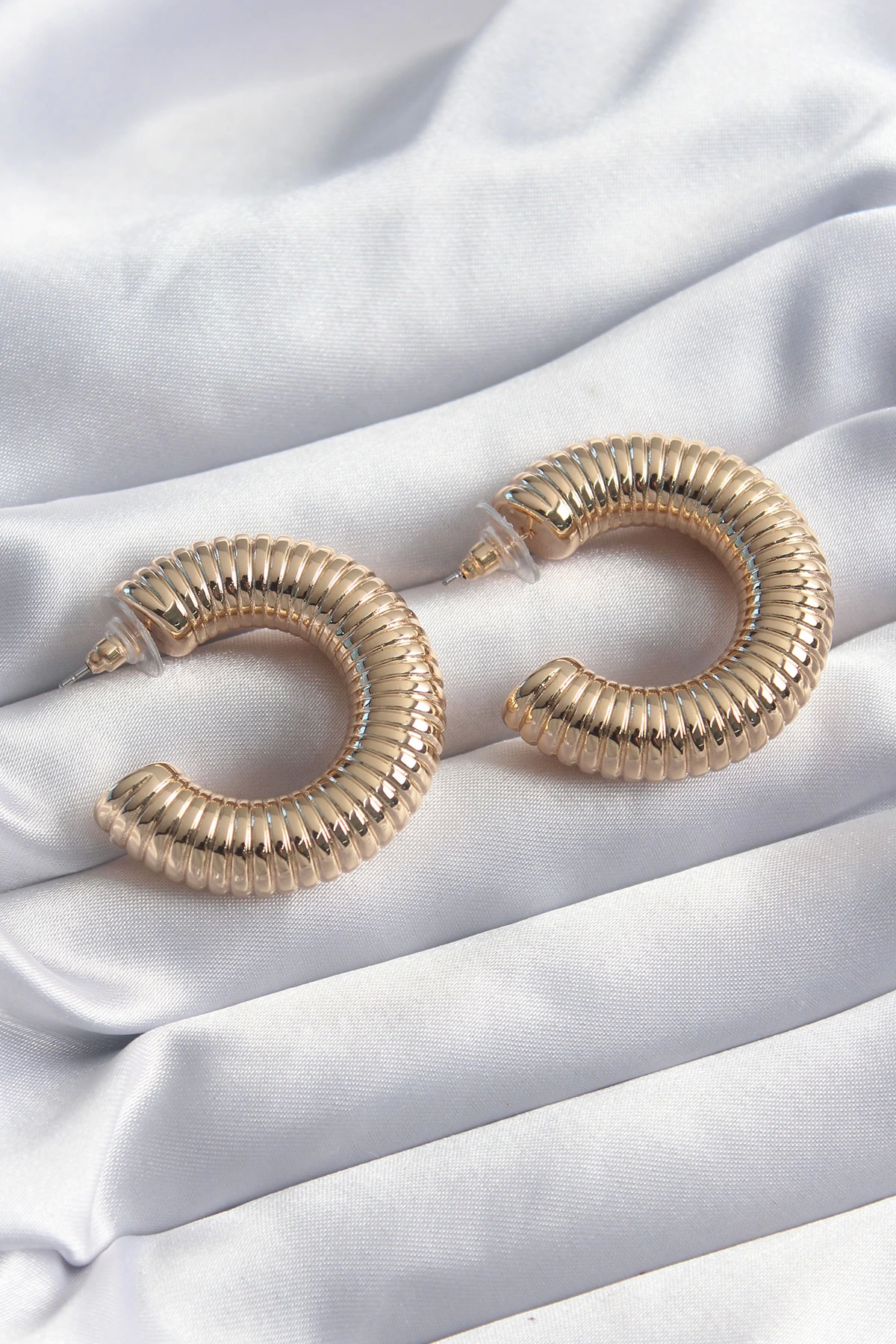 Pirinç Gold Renk İşleme Detay Halka Model Kadın Küpe