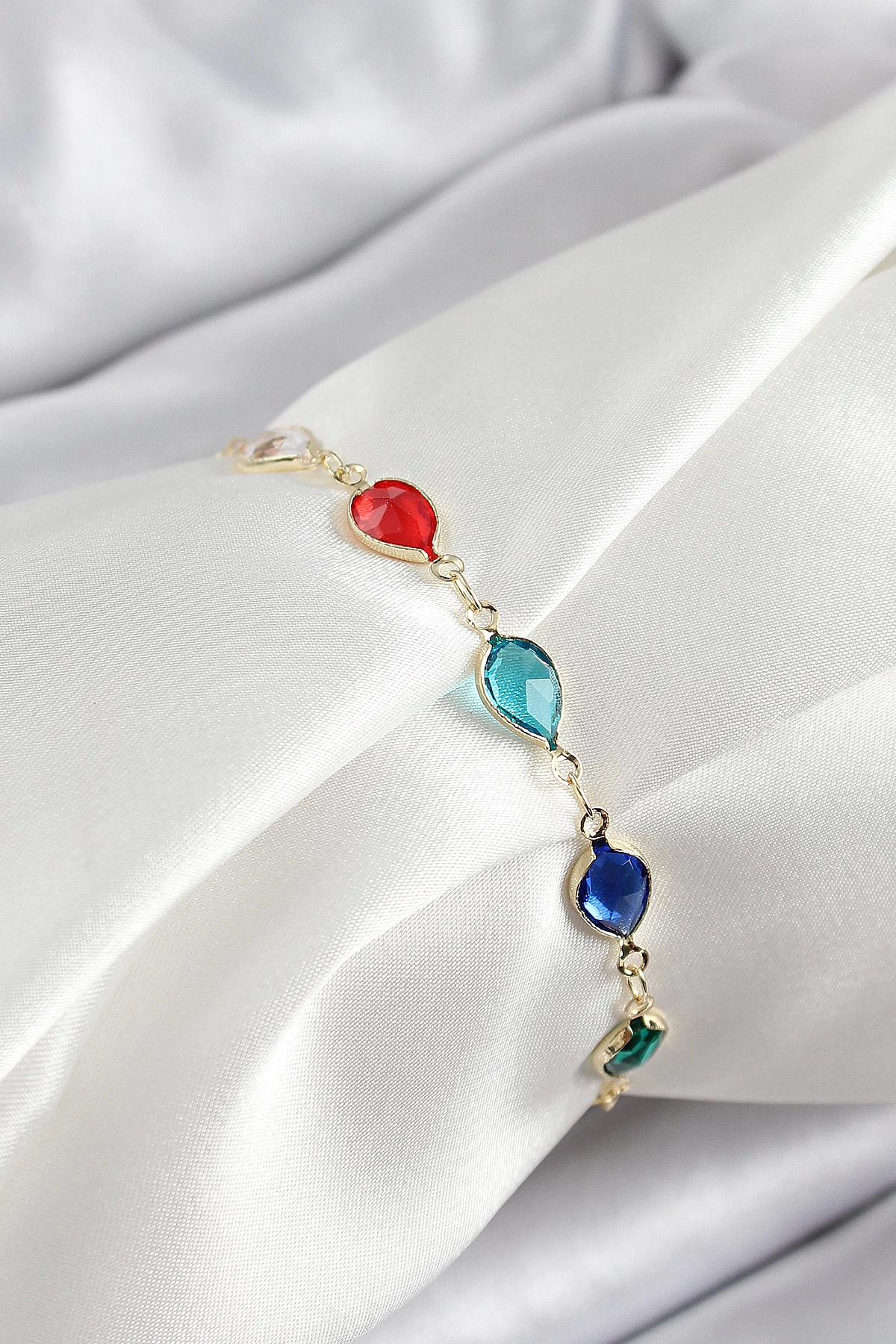 Pirinç Gold Renk Karışık Renk Damla Zirkon Taşlı Kadın Bileklik