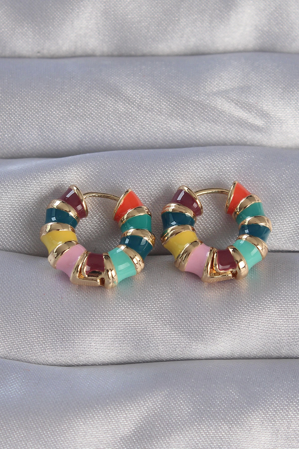Pirinç Gold Renk Mineli Çok Renkli Kabartmalı Halka Küpe