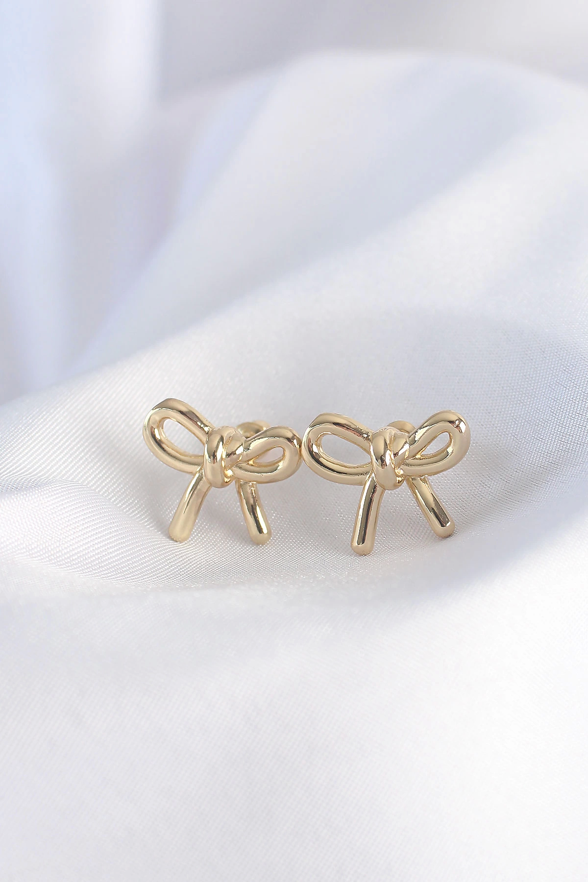 Pirinç Gold Renk Minimal Fiyonk Küpe