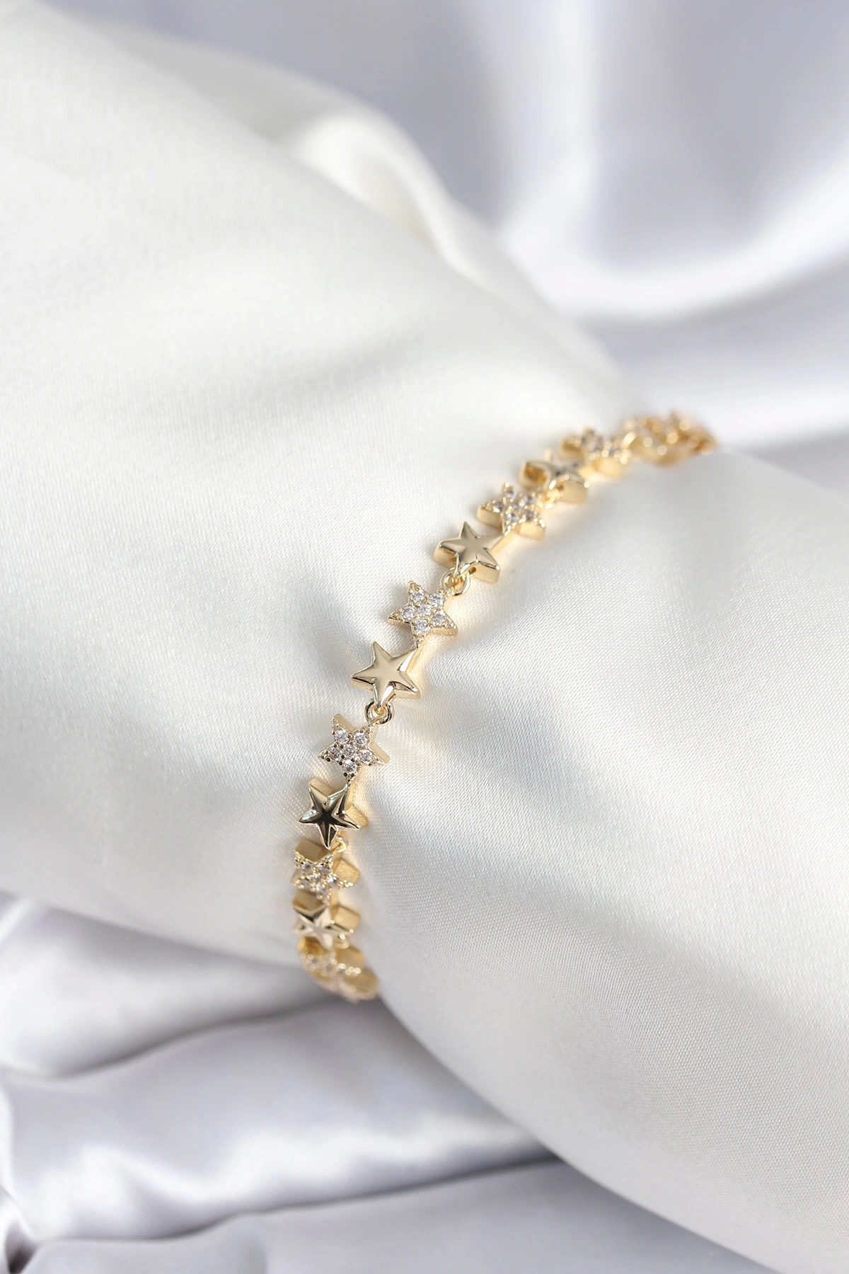 Pirinç Gold Renk Yıldız Model Kadın Bileklik