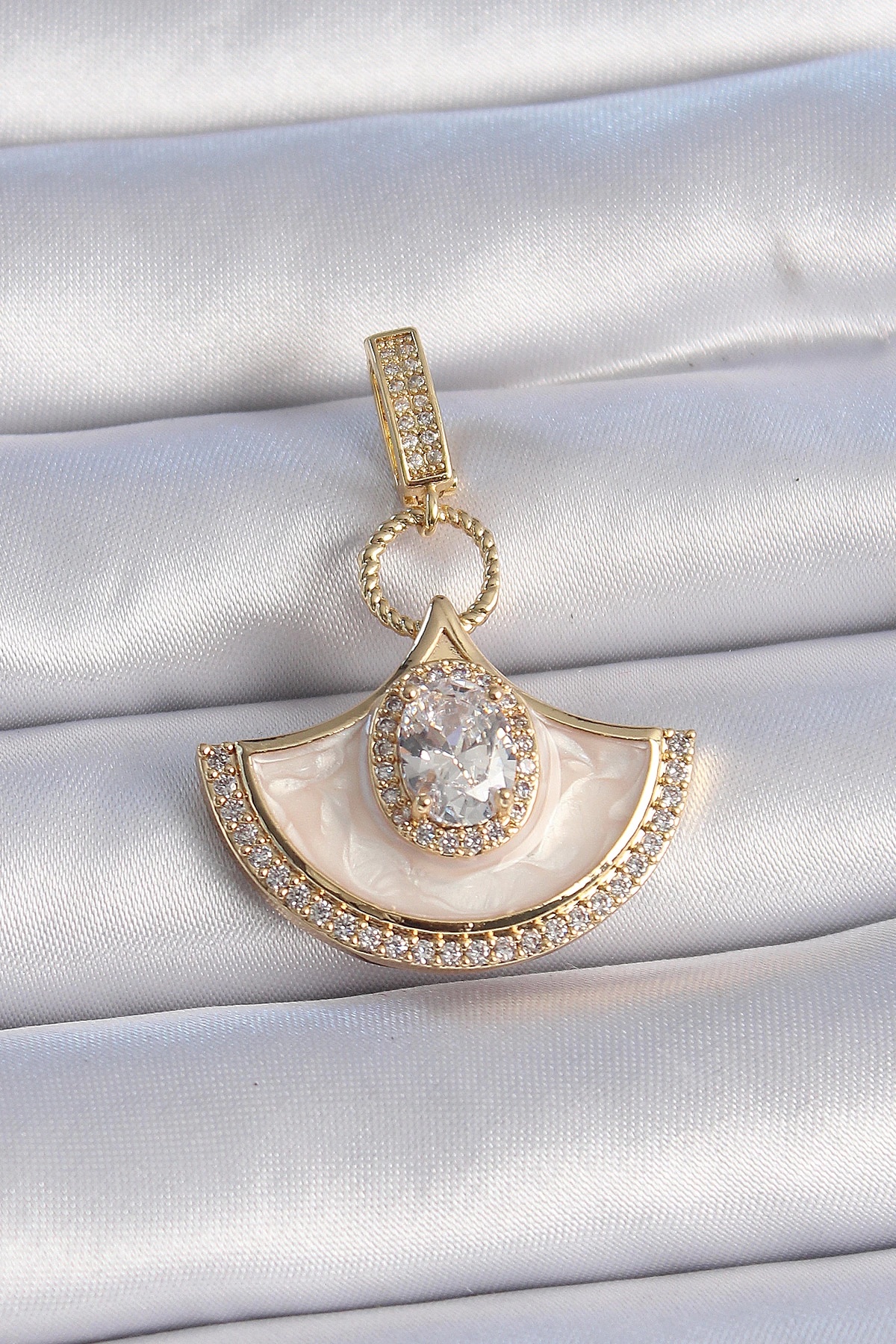 Pirinç Gold Renk Zirkon Taş Detaylı Beyaz Mineli Ajda Charm