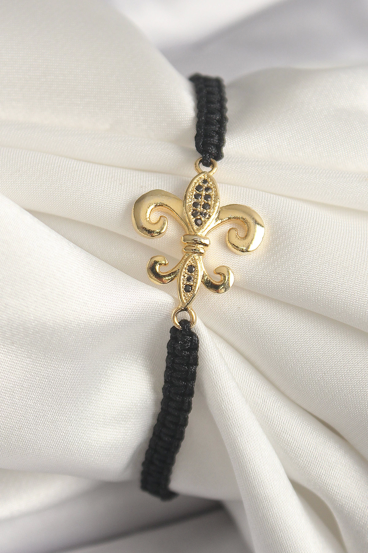 Pirinç Gold Renk Zirkon Taş İşlemeli Zambak Figür Asansörlü Makrome Model Kadın Bileklik
