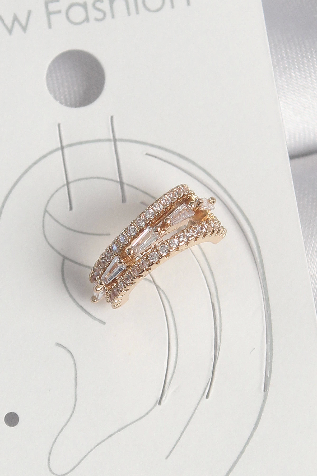 Pirinç Gold Renk Zirkon Taşlı 3'lü Sıralı Model Kadın Kıkırdak Küpe