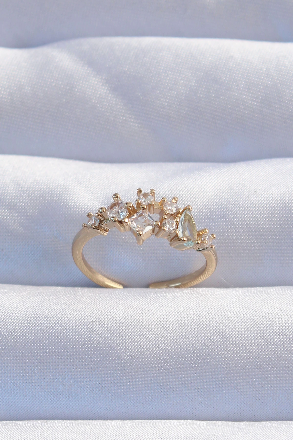 Pirinç Gold Renk Zirkon Taşlı Damla Detay Ayarlanabilir Yüzük
