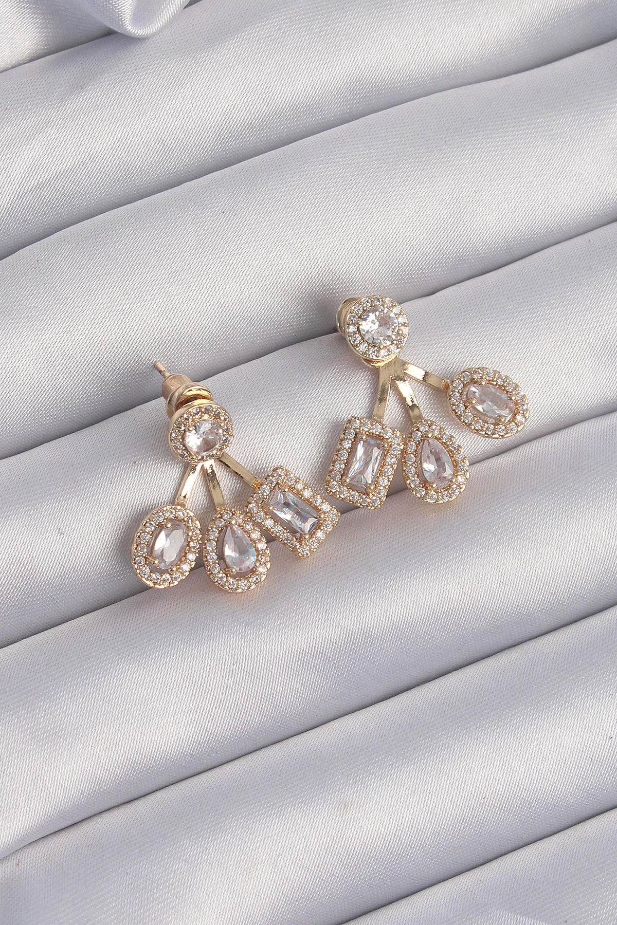 Pirinç Gold Renk Zirkon Taşlı Geometrik Model Küpe