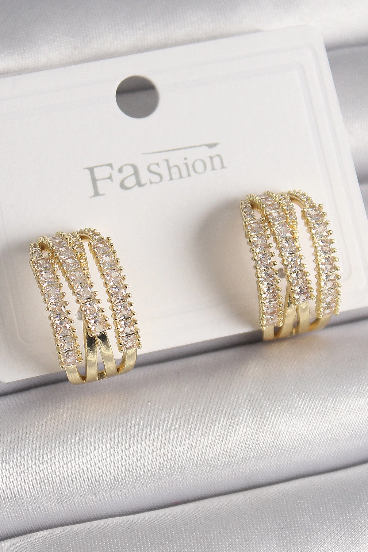 Pirinç Gold Renk Zirkon Taşlı Halka Model Kadın Küpe