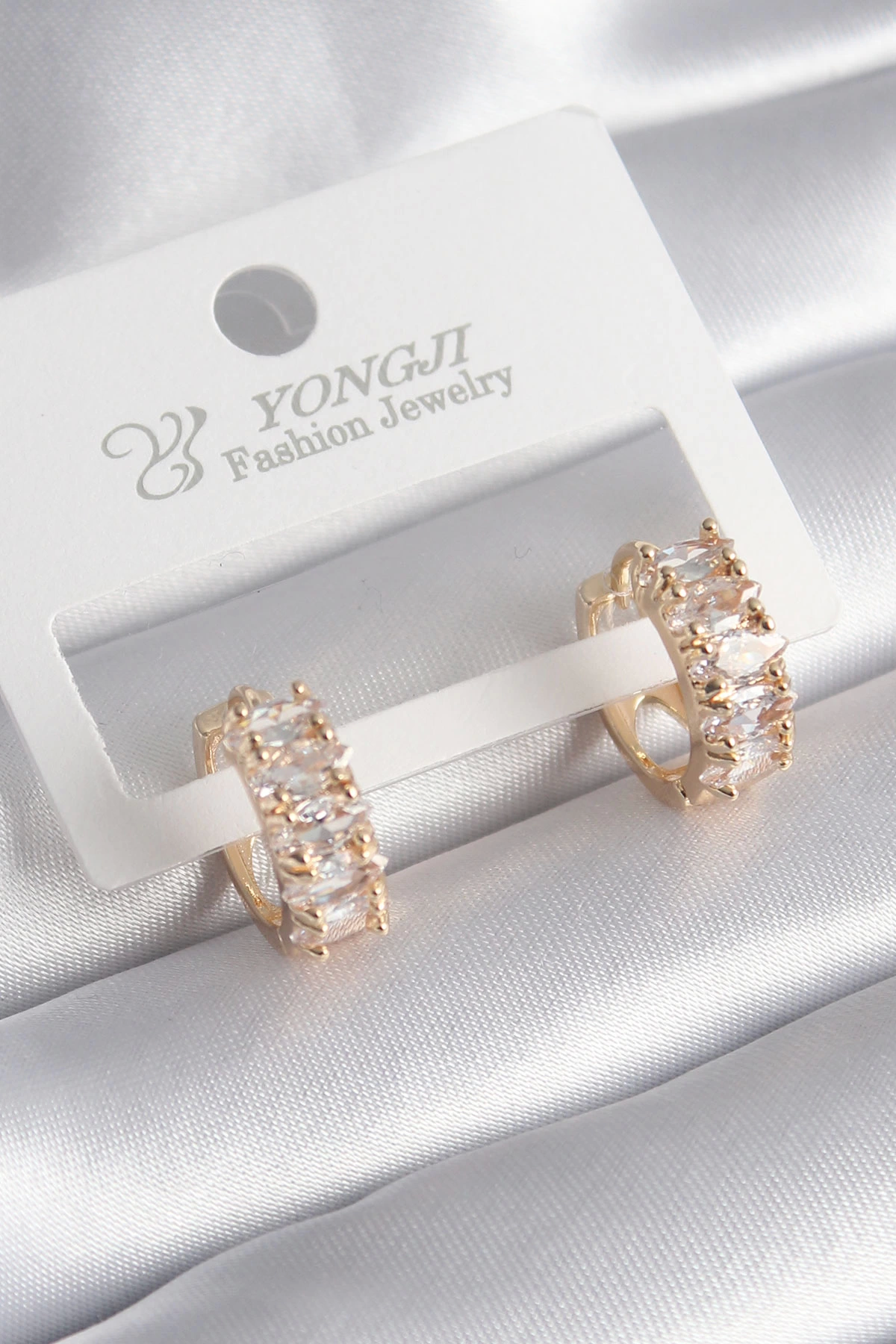 Pirinç Gold Renk Zirkon Taşlı Kadın Küpe