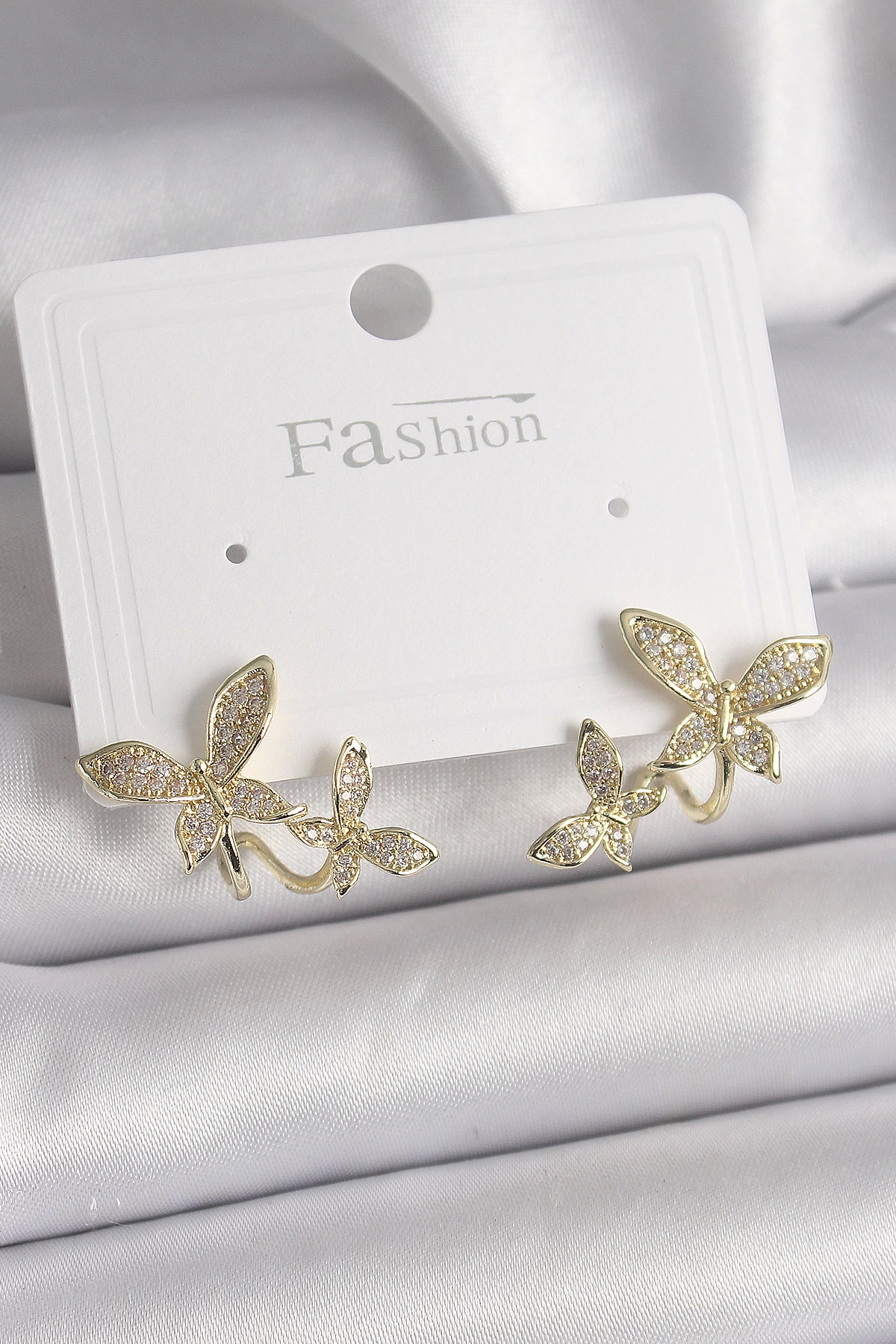 Pirinç Gold Renk Zirkon Taşlı Kelebek Model Kadın Küpe
