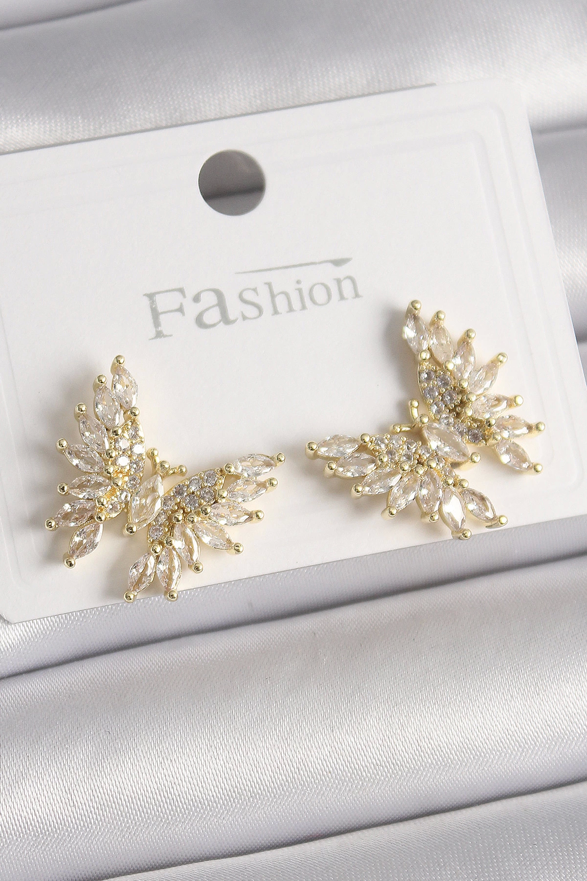 Pirinç Gold Renk Zirkon Taşlı Kelebek Model Kadın Küpe